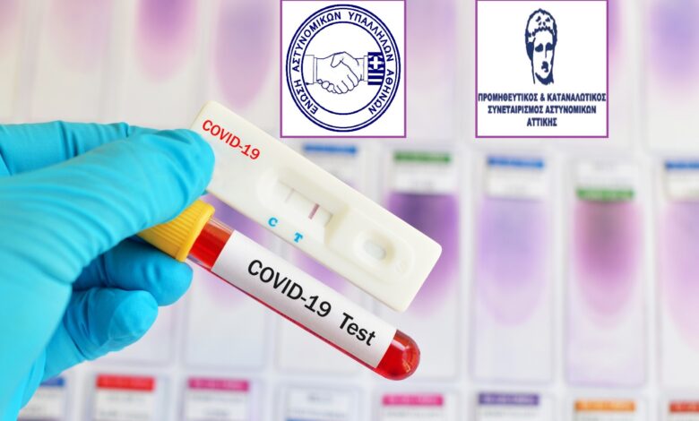 Η Ένωση Αστυνομικών Υπαλλήλων Αθηνών ανακοινώνει στα μέλη της ότι δύνανται, εφόσον το επιθυμούν, με την επίδειξη του δελτίου αστυνομικής ταυτότητας, να επωφεληθούν της προνομιακής προσφοράς ύψους 8 € , για τη διενέργεια rapid-test Covid-19, που εξασφάλισε για τα μέλη του ο Προμηθευτικός & Καταναλωτικός Συνεταιρισμός Αστυνομικών Αττικής.