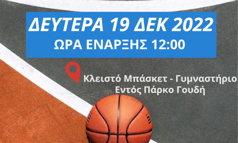 Η Ένωση Αστυνομικών Υπαλλήλων Αθηνών και η Αθλητική Ένωση Αστυνομικών Ελλάδος στο πνεύμα των εορταστικών ημερών, συνδιοργανώνουν τη Δευτέρα 19 Δεκεμβρίου 2022 και ώρα έναρξης 12:00, φιλανθρωπικό τουρνουά μπάσκετ στο κλειστό γυμναστήριο εντός του πάρκου Γουδή.