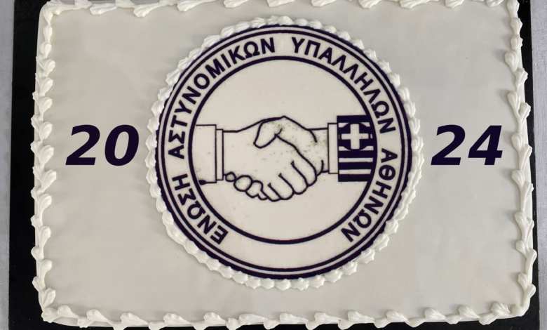 Η Ένωση Αστυνομικών Υπαλλήλων Αθηνών θα πραγματοποιήσει την κοπή της πρωτοχρονιάτικης πίτας της το Σάββατο 17 Φεβρουαρίου 2024 και ώρα 11:00 στην αίθουσα εκδηλώσεων του Κέντρου Μελετών Ασφάλειας (ΚΕ.ΜΕ.Α.) (Λ. Μεσογείων αρ.96, Πρώην Σχολή Αξιωματικών).