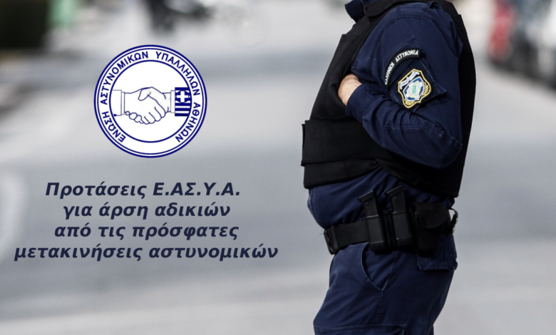Θέμα: «Προτάσεις Ε.ΑΣ.Υ.Α. για άρση αδικιών από τις πρόσφατες μετακινήσεις αστυνομικών»