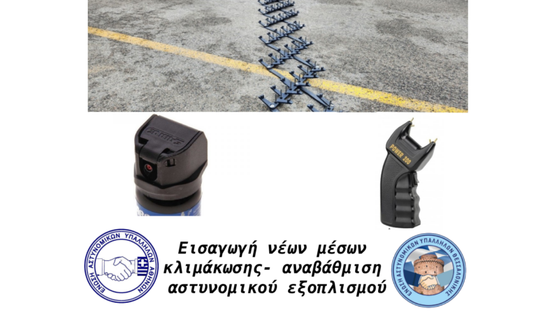Θεωρούμε αναγκαίο όσο ποτέ άλλοτε, πέραν των όποιων διαρθρωτικών αλλαγών επίκεινται στο Σώμα, να λάβουν χώρα οι επιβεβλημένες ενέργειες ώστε να θεσπιστούν και να εισαχθούν στον αστυνομικό εξοπλισμό νέα σύγχρονα μέσα, η χρήση των οποίων είναι αυτονόητη εδώ και δεκαετίες σε πολλές σύγχρονες αστυνομίες ανά τον κόσμο, ώστε ο αστυνομικός να έχει την επιλογή περισσότερων μέσων κλιμάκωσης και να αντιμετωπίζει όσο το δυνατόν καλύτερα και «αναίμακτα» δύσκολα περιστατικά, προκειμένου να αποφεύγεται η σωματική επαφή, καθώς και τυχόν τραυματισμοί.