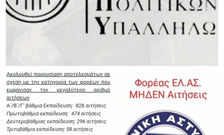https://www.mtpy.gr/blog/category/deltia-typoy/statistika-stoixeion-aitiseon-daneion, καθώς από τις 2.164 αιτήσεις δανείων που ολοκληρώθηκαν από όλους τους φορείς που υπάγονται στο Ταμείο, από το φορέα της Αστυνομίας ουδεμία υπάρχει.