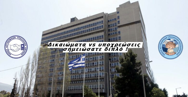 Ως Ενώσεις Αστυνομικών Υπαλλήλων Αθηνών και Θεσσαλονίκης θα συνεχίσουμε να αναδεικνύουμε και να μεταφέρουμε στην Πολιτική και Φυσική Ηγεσία του Σώματος ανακύψαντα ζητήματα και προβλήματα τα οποία ταλανίζουν τη «βάση» και προς τούτο παρακαλούμε όπως από πλευράς σας εκδηλώσετε όλες τις απαιτούμενες θεσμικές ενέργειες προκειμένου αυτά «θεραπευτούν».