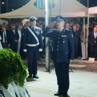 Ακολούθησε κατάθεση στεφάνων, ενός λεπτού σιγή και η ανάκρουση του Εθνικού Ύμνου.