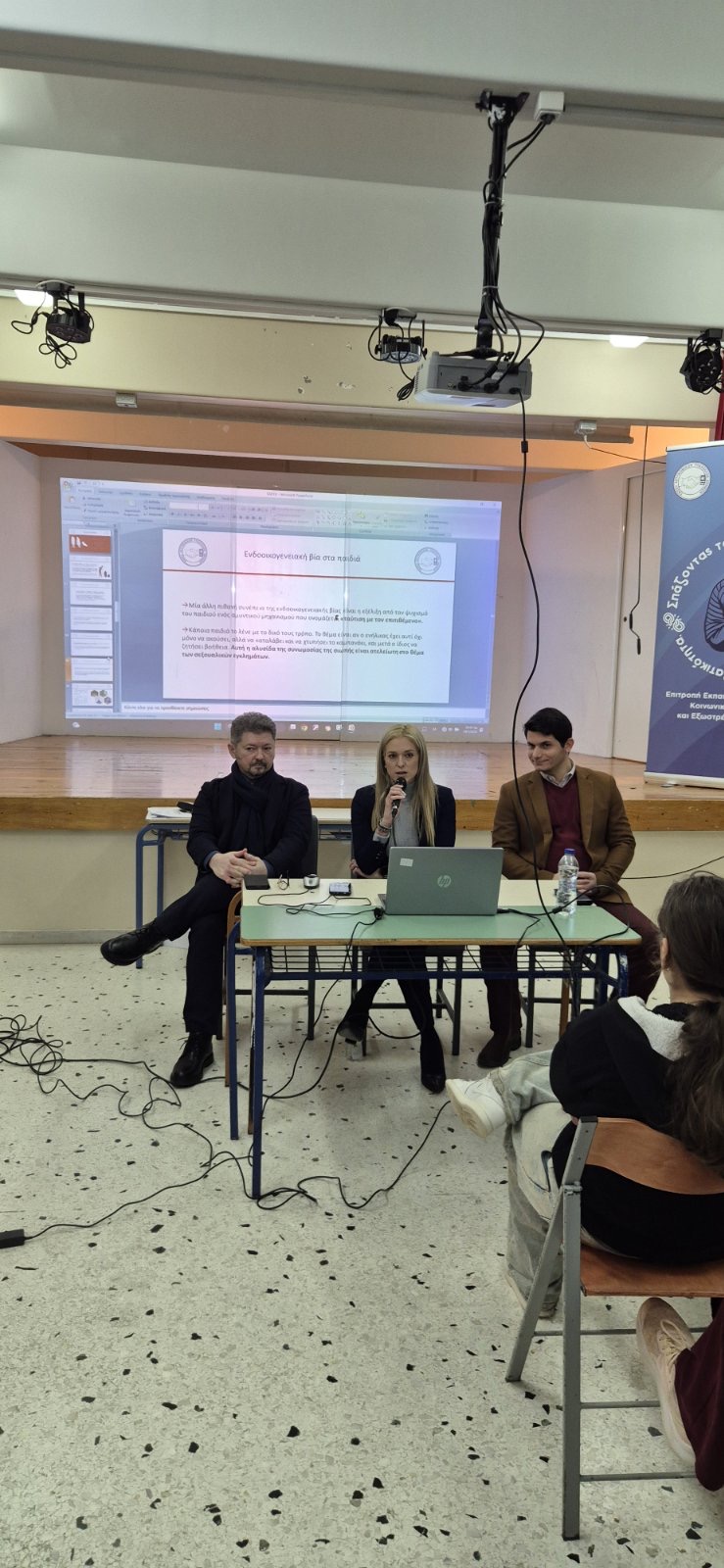 Με ιδιαίτερη τιμή και αίσθημα ευθύνης, η Ένωση Αστυνομικών Υπαλλήλων Αθηνών σε συνεργασία με την Επιτροπή Εκπαιδευτικών Θεμάτων, Κοινωνικών Θεσμών και Εξωστρέφειας ΕΑΣΥΑ, πραγματοποίησαν την πρώτη εκδήλωση της οργανωμένης καμπάνιας της για την πρόληψη και την αντιμετώπιση της βίας στους ανηλίκους, με την παρουσία της στο Γυμνάσιο Διονύσου.