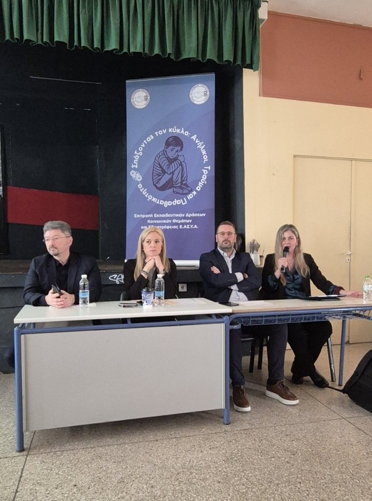 Ως ομιλητές συμμετείχαν η Πρόεδρος της Επιτροπής, Σοφία Βαγενά, ο ποινικολόγος – εγκληματολόγος Παναγιώτης Παπαϊωάννου, καθώς και η ψυχολόγος Ράνια Γεωργιάδου.